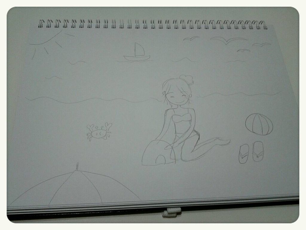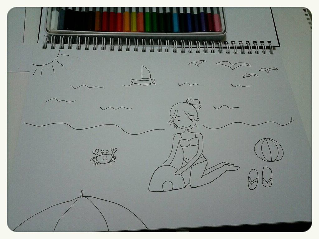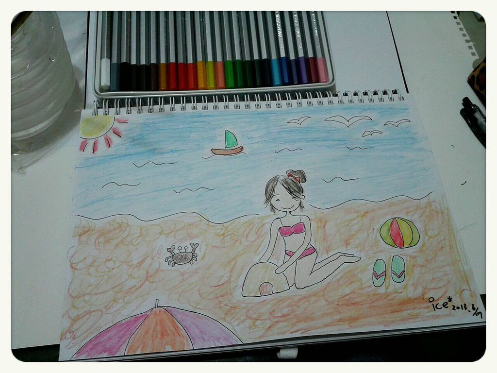 畫完也好像去了一趟海邊~皮膚都晒黑了 @@”