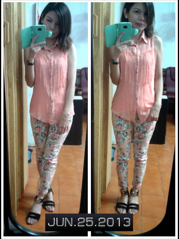 粉色流蘇背心與花褲