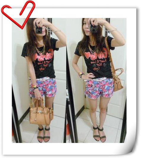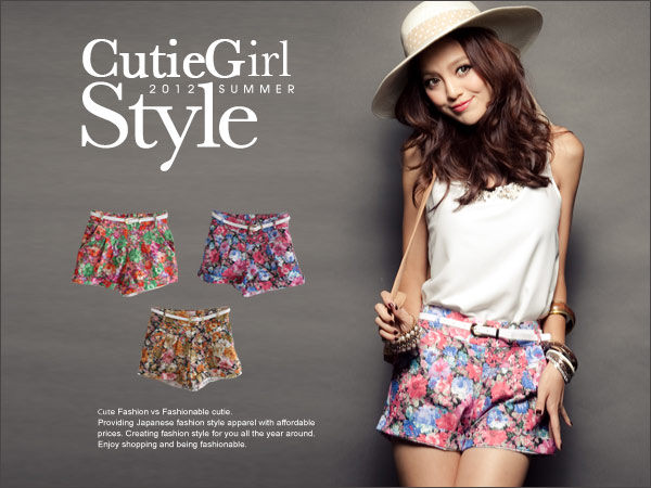 率真甜心~夢幻甜心附皮帶花花反摺短褲(藍/綠/橘)特190