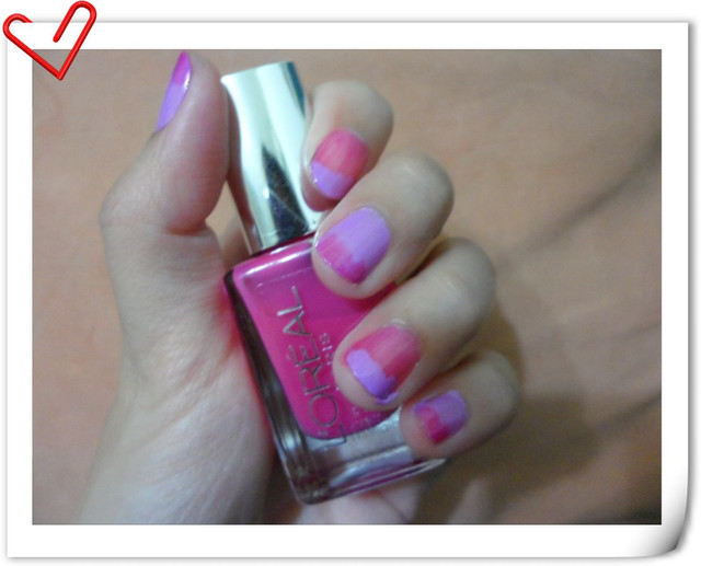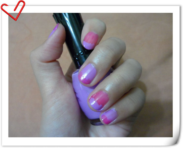 這種雙色拚接最簡單囉!塗底擦邊就完成了啊